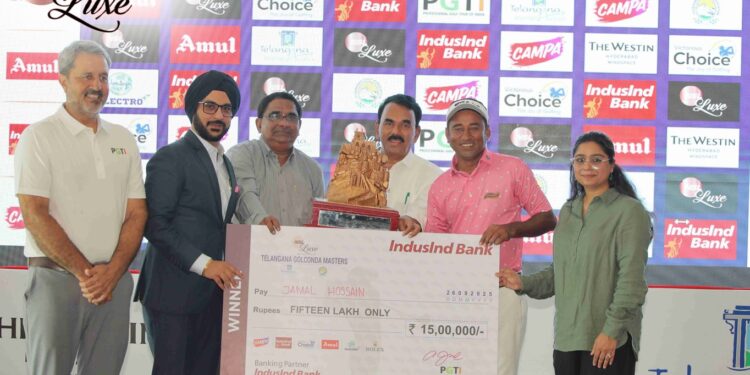 ভারী বর্ষণে চূড়ান্ত রাউন্ড বাতিল হয়ে যাওয়ায় এনএসএল লাক্স প্রেজেন্টস তেলেঙ্গানা গোলকোন্ডা মাস্টার্স ২০২৫-এর শিরোপা জিতলেন বাংলাদেশের জামাল হোসেন। শুক্রবার হায়দরাবাদ গলফ অ্যাসোসিয়েশনে (এইচজিএ) ৫৪ হোল...